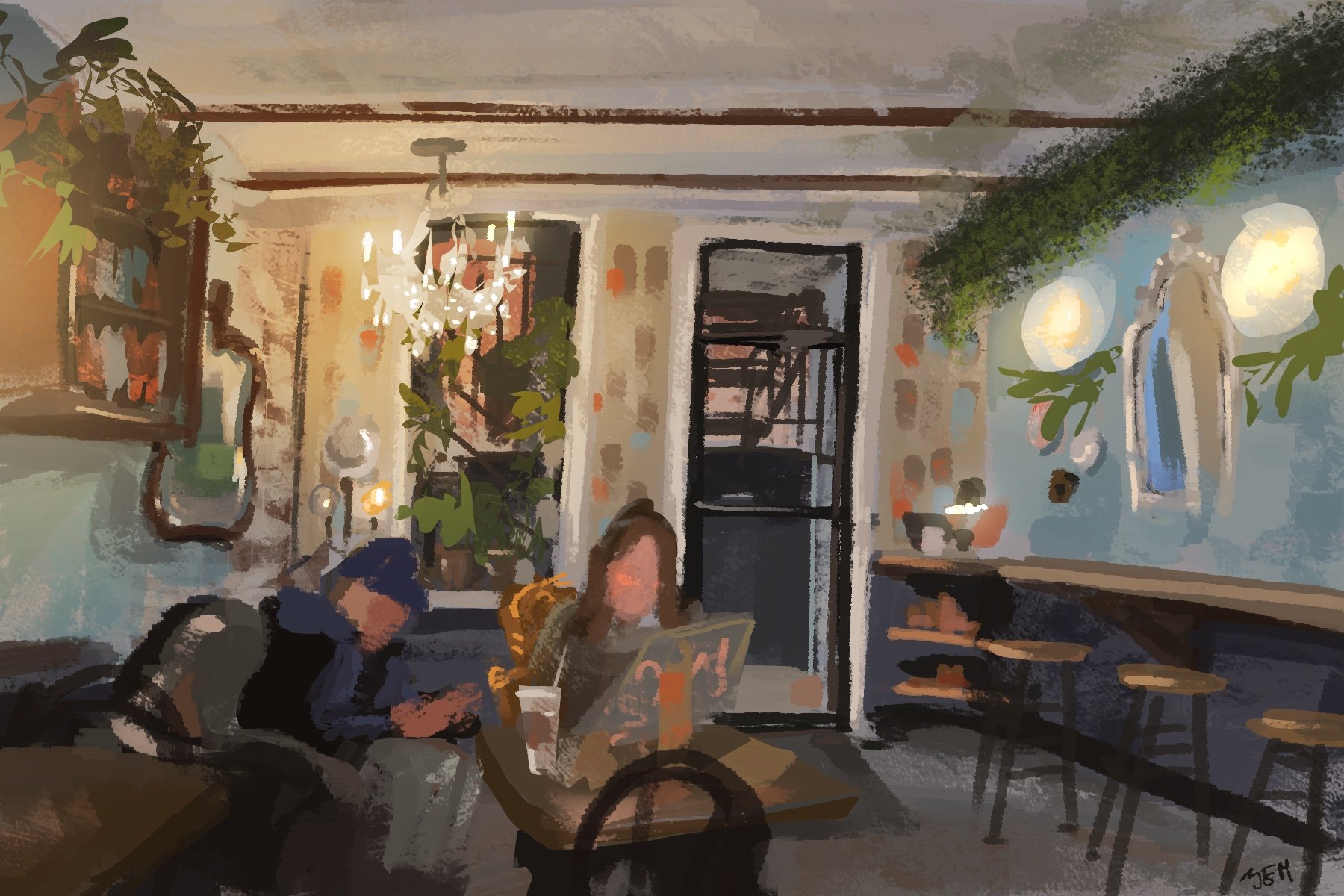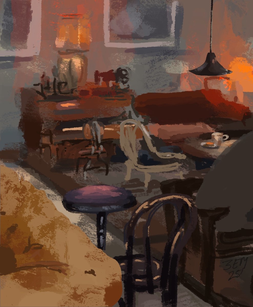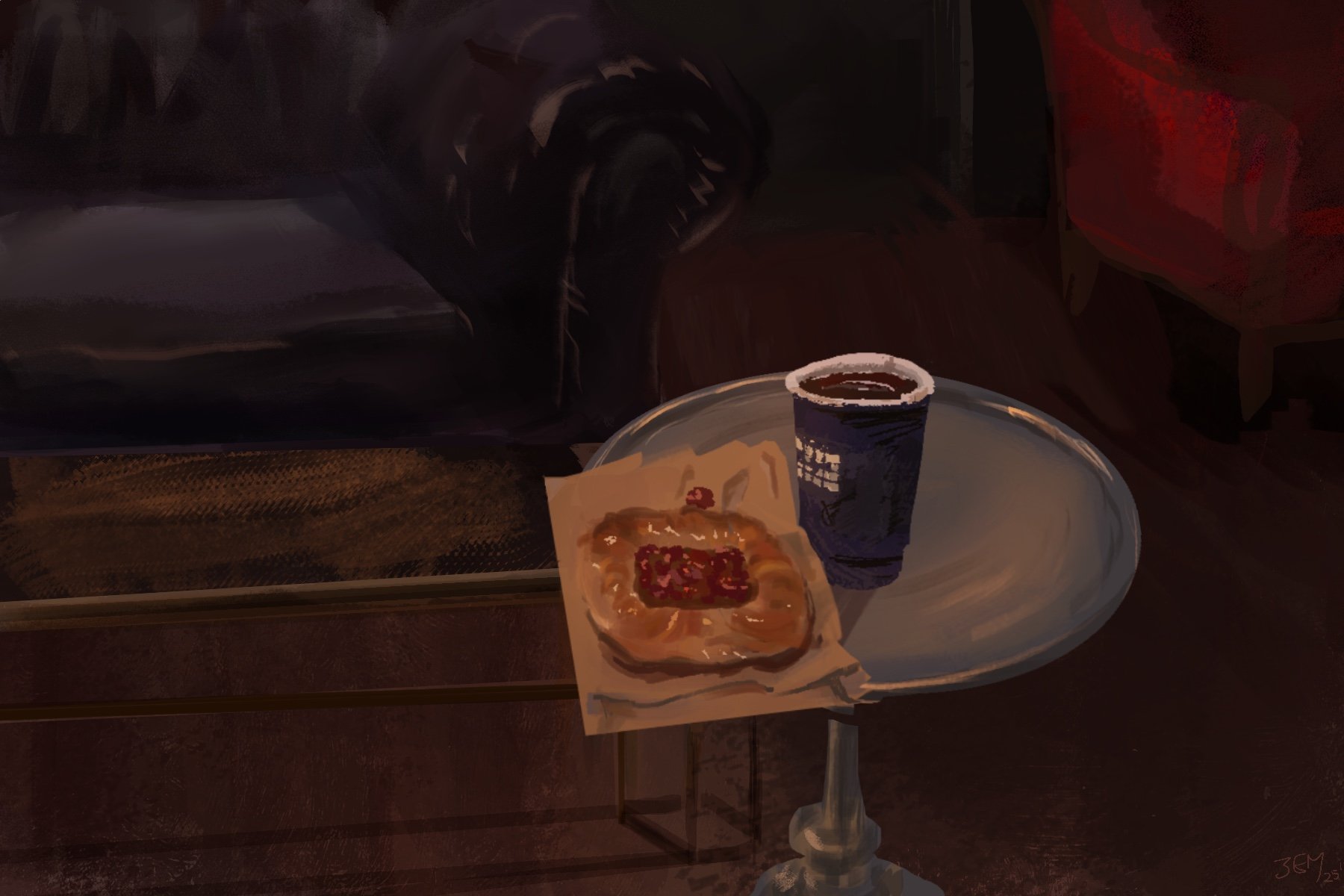 Cherry danish and coffee May 2025 Savviest study lounge in Hell’s Kitchen. Sophisticated grunge vibes, great music, cool art, comfy seating and strong coffee. Possibly my favorite café.